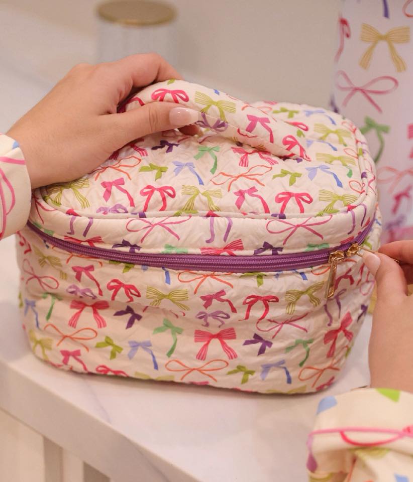 Meet the Jetsetter Quilted Bag, your travel ready essential for staying organized on the go. Designed with a structured silhouette, it features a quilted body for added durability and softness, a secure zip-around closure to keep contents in place, and a top handle for easy carrying. Spacious enough to hold beauty essentials, toiletries, or small accessories, this versatile bag is perfect for both everyday use and getaways.
